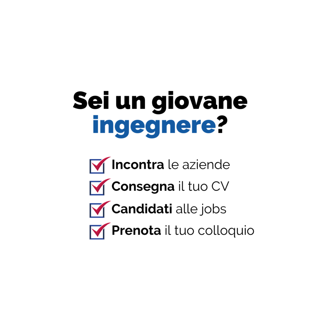 Virtual Job Meeting ENGINEERING è l’occasione per tutti i laureandi, neo-laureati e giovani INGEGNERI in cerca di lavoro di incontrare direttamente i responsabili delle principali aziende italiane che offrono lavoro, interagire on-line chattando, trasferire il proprio CV e candidarsi alle posizioni aperte.